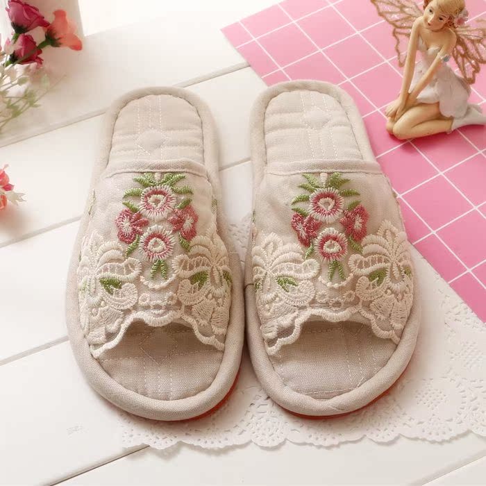 2019 New Secret Garden vải dép ren thêu nhà vài trượt gân tại dép cuối mềm