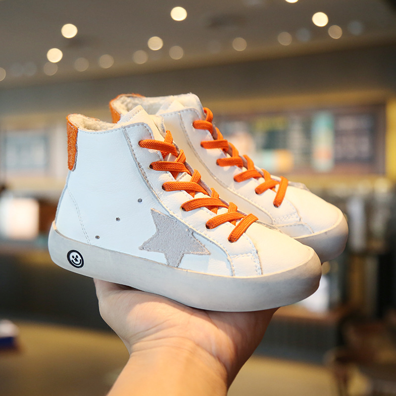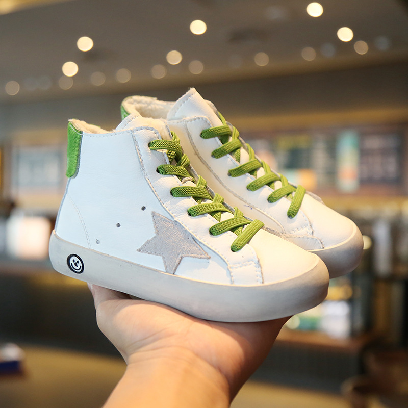 độn bông trẻ em giày nam 2019 mới mùa thu và mùa đông da Hàn Quốc cao-top bông cộng với nhung giày ấm giản dị hai cô gái